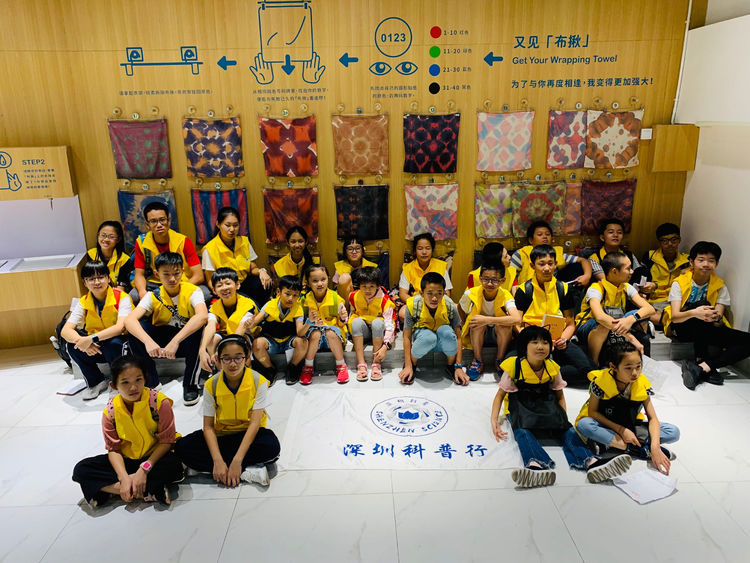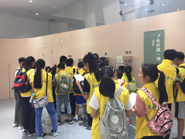 同學(xué)們親手觸摸成品面料猜一猜是用什么材料