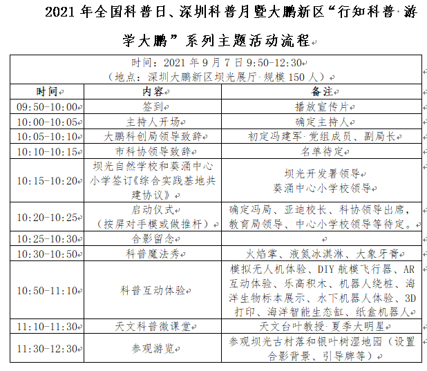 活動主題:2021年全國科普日、深圳科普月暨大鵬新區(qū)“行知科普 游學(xué)大鵬”系列主題活動
