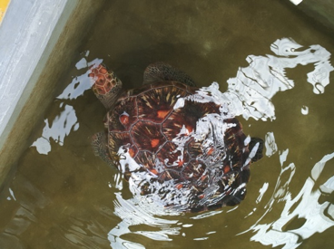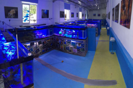 珊瑚保育基地處生物缸? ? ? ? ? ? ? ? ? ? ? ? ? ? ? ? ?被救助的海龜正在進行野化訓(xùn)練