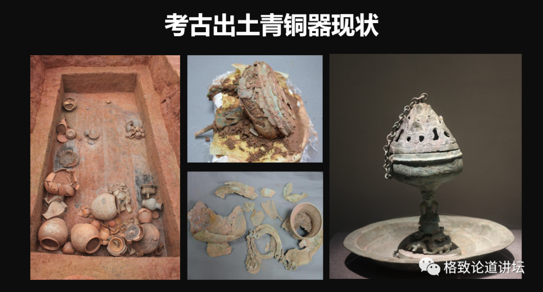 這些銅器在廣東、廣西還有很多,主要產(chǎn)地是嶺南地區(qū),還有一些零星傳播到周邊。這些是我們在修復(fù)過程中對它們的一些研究和意義。