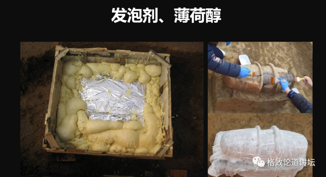加熱變成液體后,就可以涂在文物的表面,涼了之后文物表面就硬化了,就方便提取了。